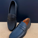 - Classic Black Leather Penny Loafers for Men